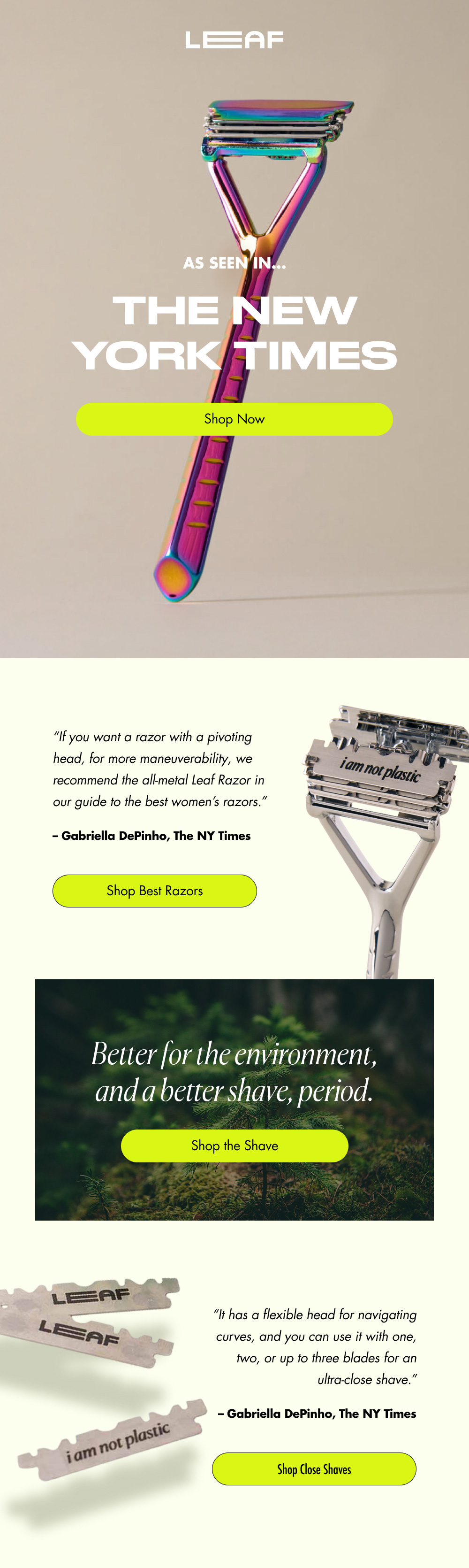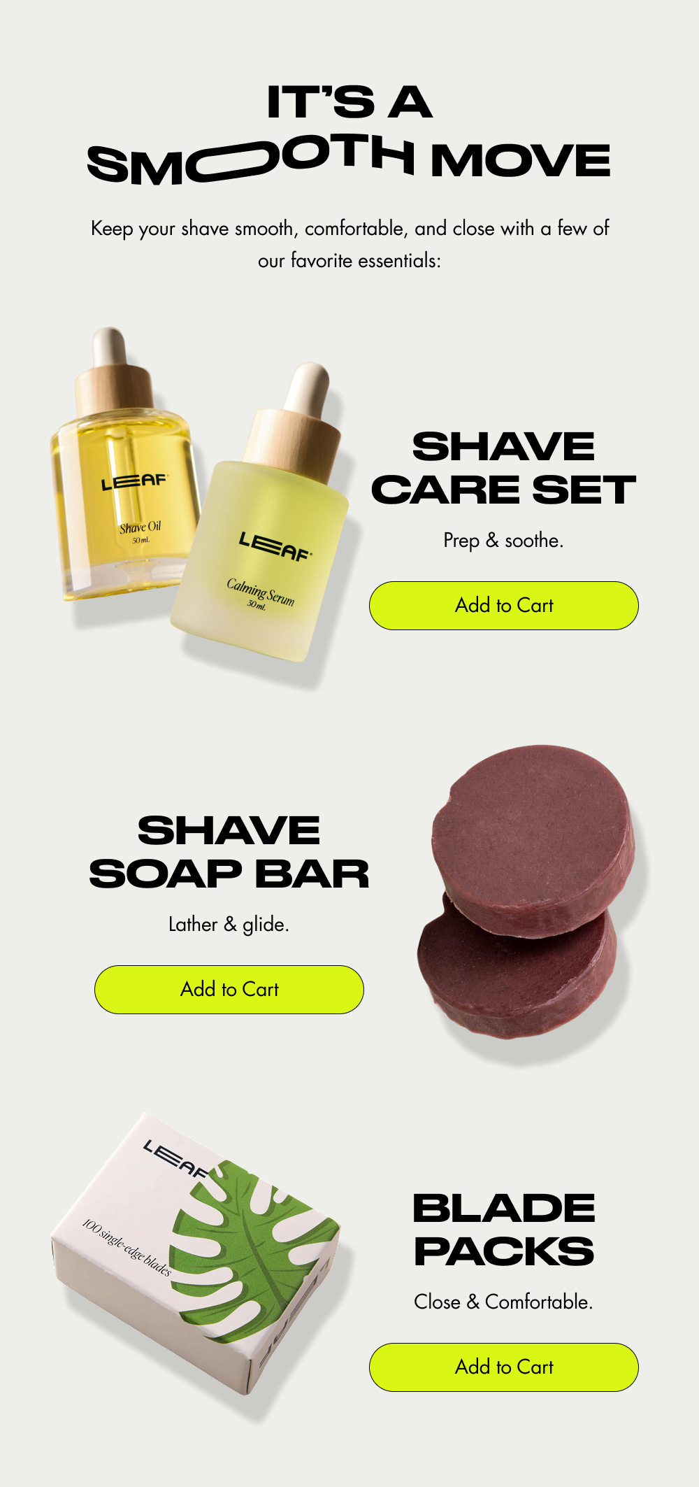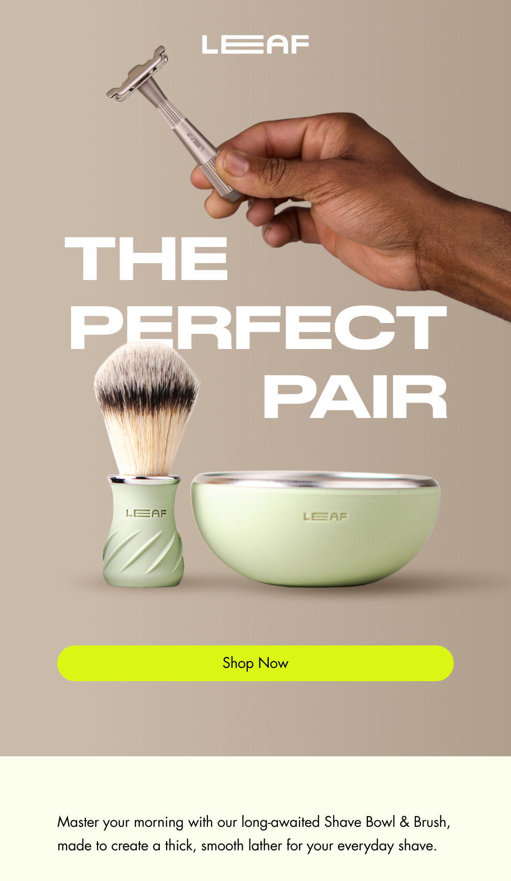 Leaf Shave is a sustainability-focused shaving brand offering durable metal razors and clean shave-care products as a lasting alternative to disposable plastic. Founded by two friends who believed the problem wasn't their skin, the brand is committed to better shaves, less waste, and a cleaner planet.